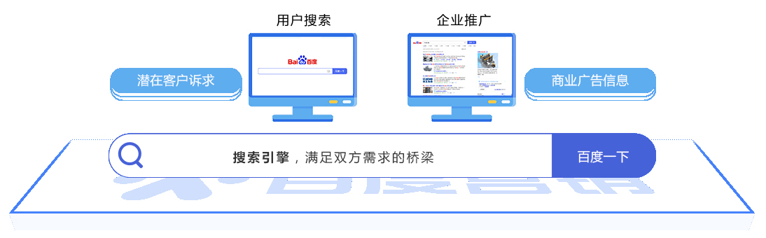 每天网民在百度进行数亿次的搜索,其中一部分搜索词明确的表达了某种商业意图,即希望购买某一产品,寻找提供某一服务的提供商,或希望了解该产品/服务相关的信息。同时,提供这些产品/服务的企业也在寻找潜在客户。通过百度搜索推广的关键词定位技术,可以将高价值的企业推广结果精准地展现给有商业意图的搜索网民,同时满足网民的搜索需求和企业的推广需求。